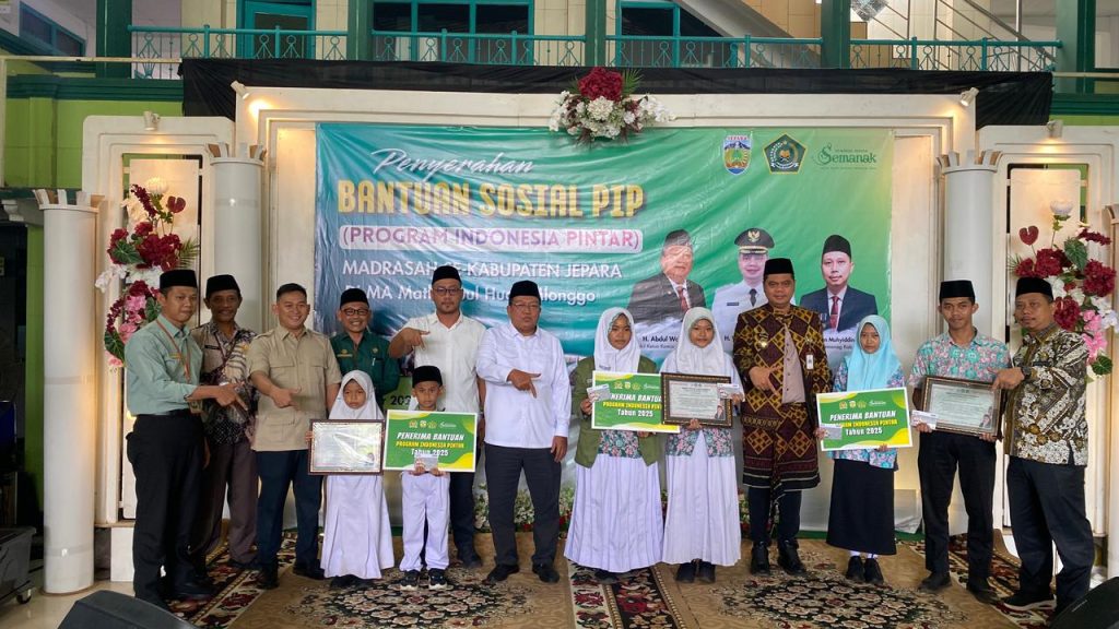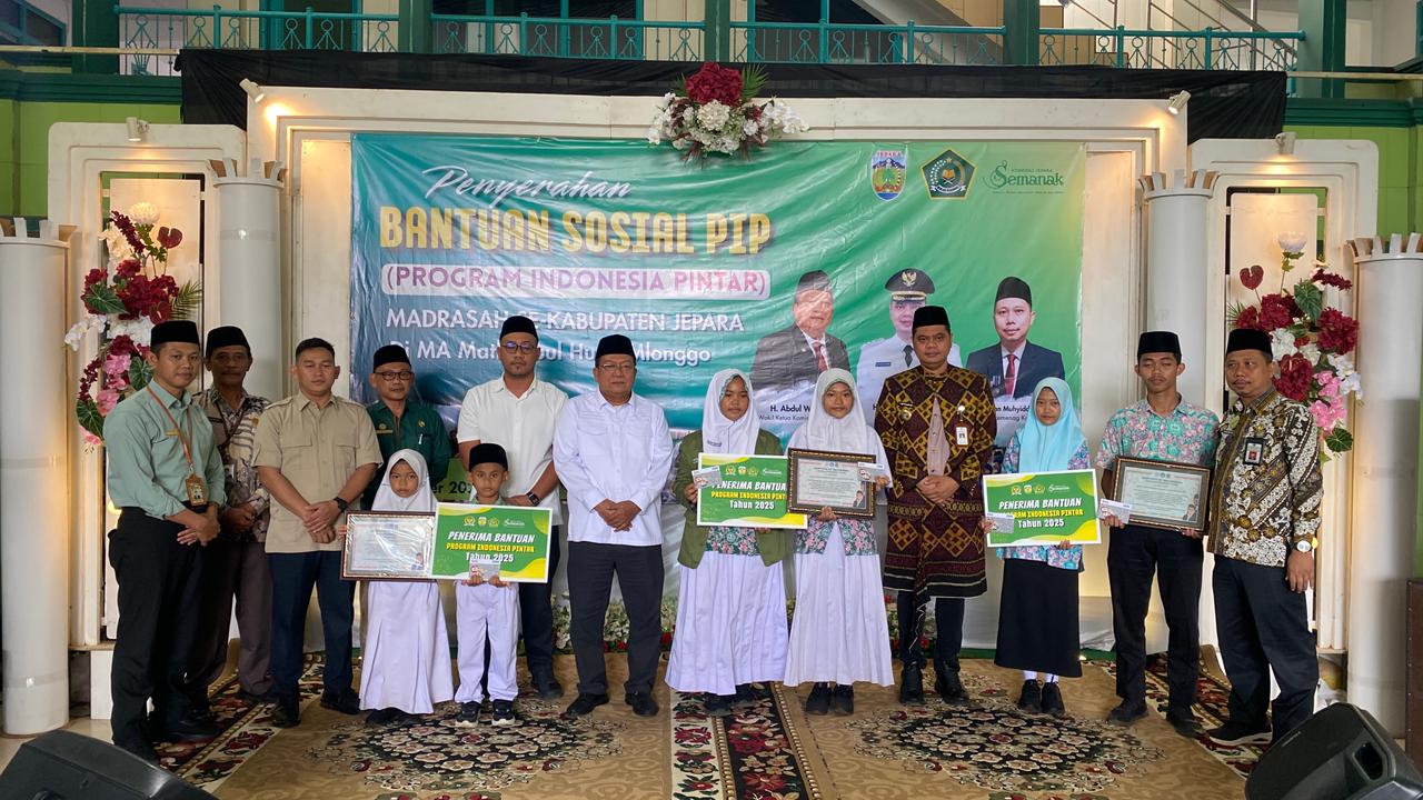 JEPARA — Sebanyak 17.799 siswa madrasah se-Kabupaten Jepara menerima bantuan Program Indonesia Pintar (PIP) 2025. Bantuan tersebut diserahkan langsung oleh Wakil Ketua Komisi VIII DPR RI H. Abdul Wahid, didampingi Bupati Jepara H. Witiarso Utomo, Kepala Kantor Kementerian Agama Kabupaten Jepara H. Akhsan Muhyiddin, serta Kepala Dinas Pendidikan, Pemuda dan Olahraga Jepara Ratib Zaini.