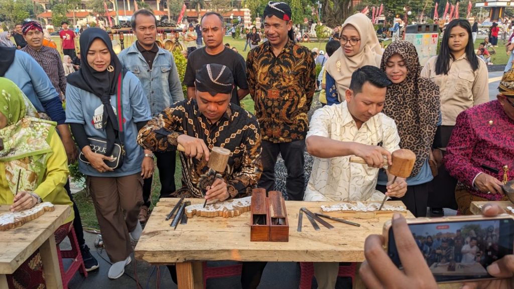 Bupati Jepara Witiarso Utomo, Wakil Ketua DPRD Jepara Arizal Wahyu Hidayat, anggota DPRD Jateng Andang Wahyu Triyanto dan lainnya ikut menjajal langsung proses kreatif mengukir.