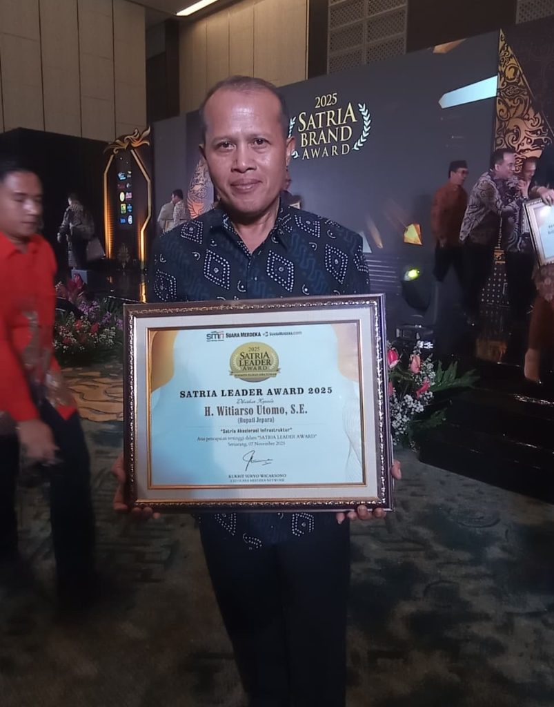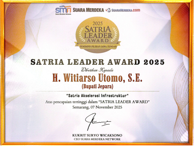 SEMARANG – Komitmen Bupati Jepara H. Witiarso Utomo dalam mempercepat pembangunan infrastruktur mendapat apresiasi tinggi. Ia dinobatkan sebagai penerima Satria Leader Award 2025 untuk kategori “Satria Akselerasi Infrastruktur” yang diselenggarakan oleh Suara Merdeka Network, Jumat (7/11/2025) di Semarang.