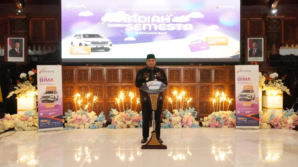 JEPARA – Satu unit mobil Toyota Innova Zenix Hybrid dan total hadiah senilai miliaran rupiah resmi diundi dalam acara Penarikan Undian Tabungan Bima Periode I Tahun 2026 yang digelar Bank Jateng di Pendopo R.A. Kartini, Jumat (23/1/2026). Mengusung tema “Hadiah Dari Semesta #SemakinBaik”, momen spesial ini menjadi bentuk apresiasi nyata bagi loyalitas nasabah Bank Jateng.