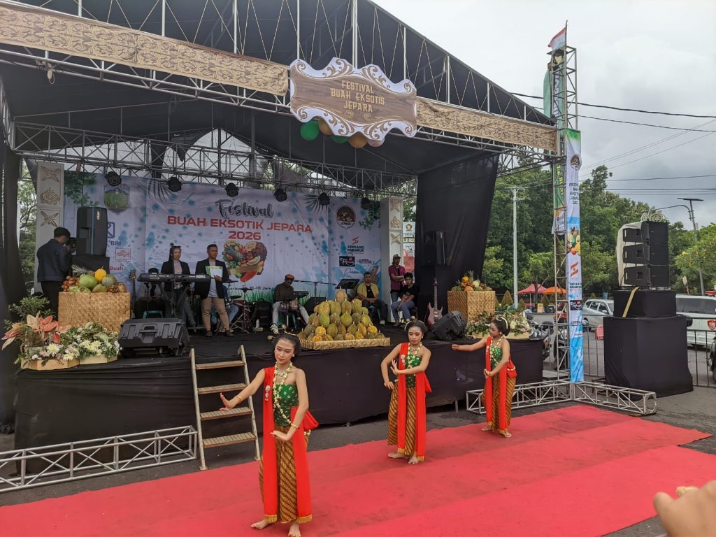 JEPARA – Alun-Alun Jepara 1 sejak Jumat (16/1/2026) dipenuhi warna-warni dan aroma harum beragam buah lokal dalam pembukaan Festival Buah Eksotik Jepara 2026. Festival yang berlangsung hingga Minggu (18/1) ini bertujuan memajukan sektor pertanian dan meningkatkan nilai ekonomi produk khas Jepara.