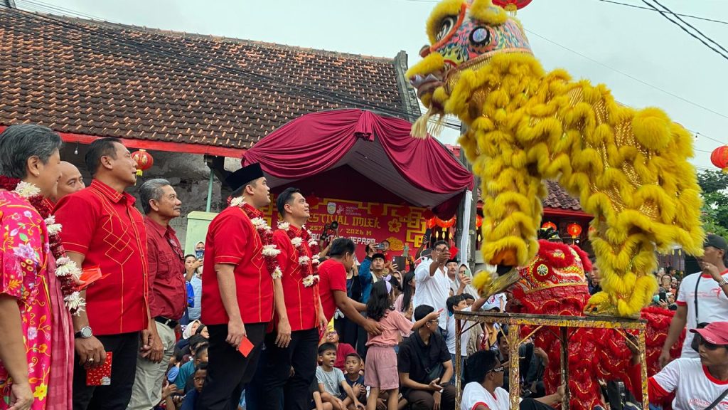 JEPARA – Suasana berbeda terasa di kawasan Pecinan Jepara, Selasa (25/2/2025). Warna merah dan lampu lampion yang menghiasi sudut-sudut jalan dipadukan tawa warga bercampur dengan tabuhan musik yang mengiringi pertunjukan barongsai dalam Festival Imlek 2025 yang berlangsung hangat dan meriah.