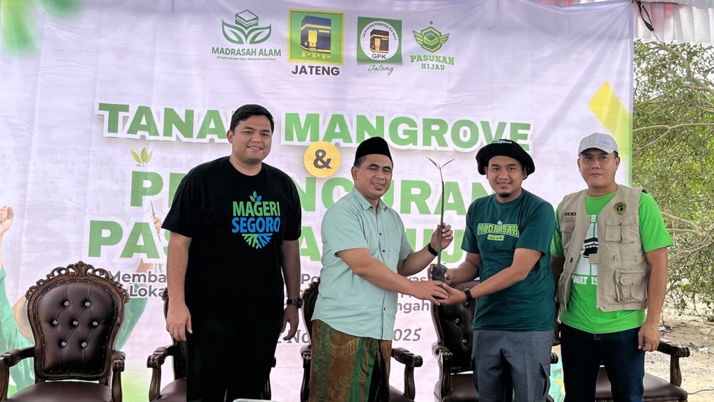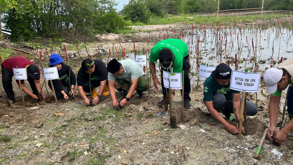 JEPARA – Pengurus Wilayah Gerakan Pemuda Ka’bah (GPK) Jawa Tengah menggelar penanaman mangrove sekaligus meluncurkan Pasukan Hijau di pesisir Desa Tanggul Tlare, Kecamatan Kedung, Kabupaten Jepara, Sabtu (22/11/2025) pagi. Kegiatan ini menjadi bagian dari upaya kolaboratif merawat kelestarian alam dan menjaga garis pantai utara Jawa dari ancaman abrasi.