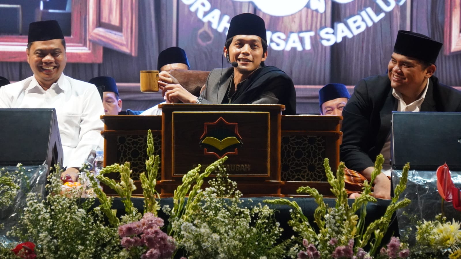 “Jepara ini khasnya ukir, sampai saya dapat gelas ini juga ada ukiran wajah saya. Saya mau minum pun ewuh karena gambarnya ini pas di tempat saya minum,” ujar Gus Iqdam yang langsung disambut gelak tawa para jemaah.