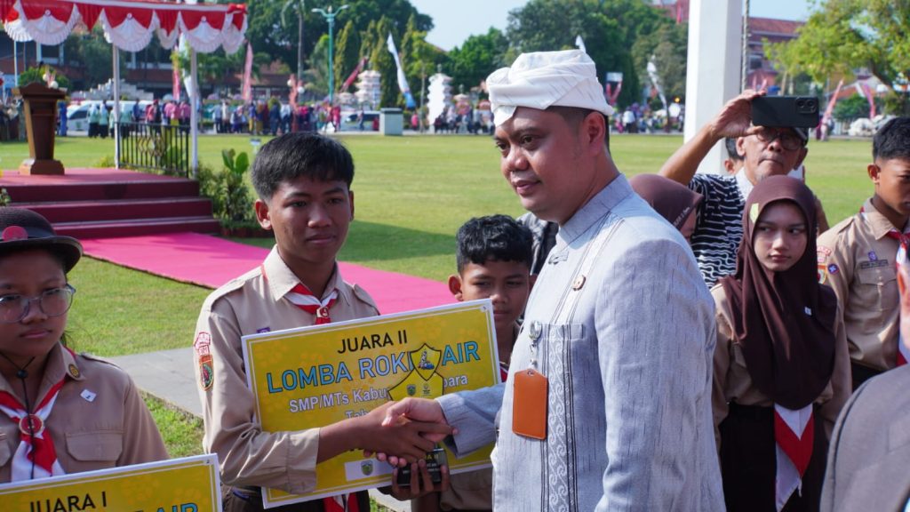 JEPARA – Bupati Jepara Witiarso Utomo memimpin Upacara Bendera Peringatan Hari Jadi ke-477 Kabupaten Jepara dengan penuh khidmat yang berlangsung di Alun-alun 1 Jepara, Jumat (10/4/2026). Dalam amanatnya, Bupati menekankan bahwa peringatan tahun ini bukan sekadar hitungan usia, melainkan refleksi atas perjalanan panjang daerah yang lahir dari kerja keras dan keteguhan hati warganya.