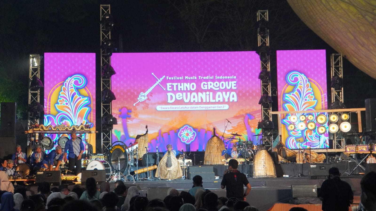 JEPARA – Festival Musik Tradisional Indonesia (FMTI) berlangsung di Pantai Kartini Jepara, Sabtu (15/11/2025) hingga Minggu (16/11/2025). Puluhan seniman dari berbagai daerah tampil dalam perhelatan yang mengusung tema “Ethno Groove Devanilaya”.