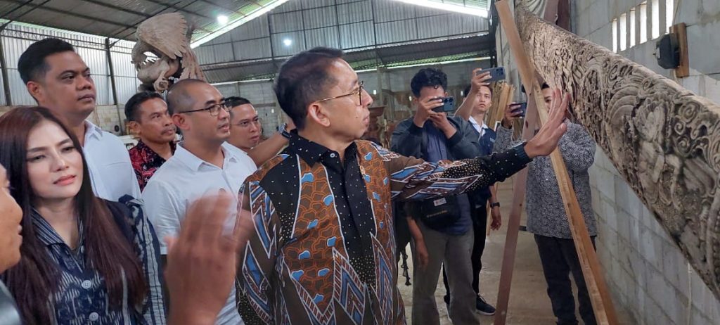 JEPARA – Menteri Kebudayaan Republik Indonesia Fadli Zon, mengunjungi Sentra Kerajinan Relief di Desa Senenan Jepara. Salah satu UMKM yang dikunjungi adalah Sanggar Kerajinan Tatah, yang dipandu pendiri Sanggar, Sutrisno bersama teman-temannya, pada Sabtu (15/11/2025).