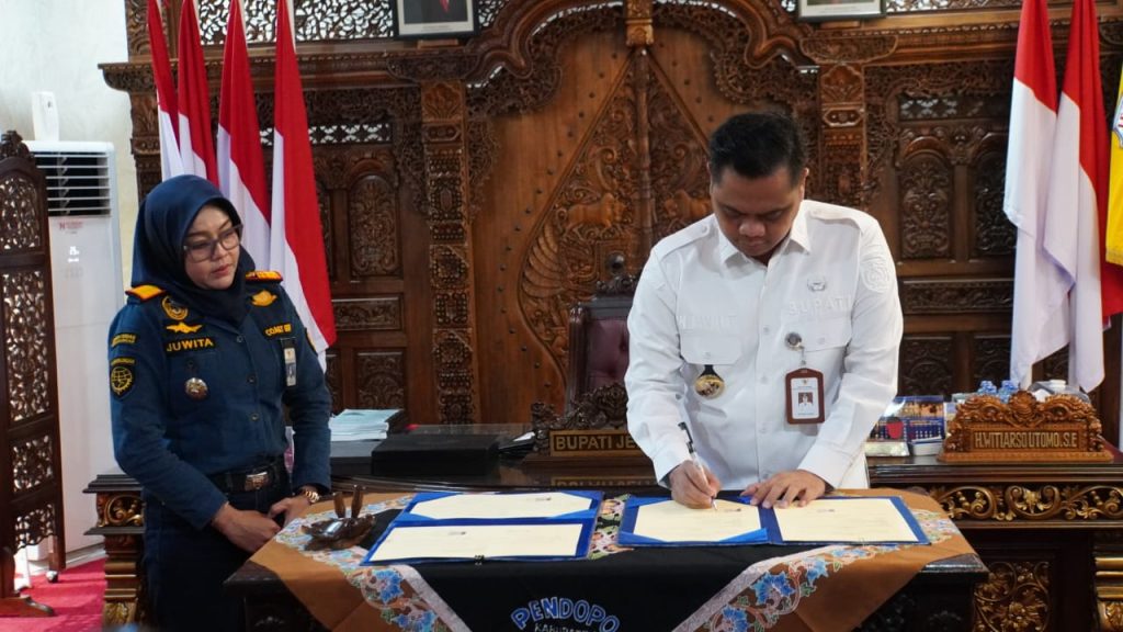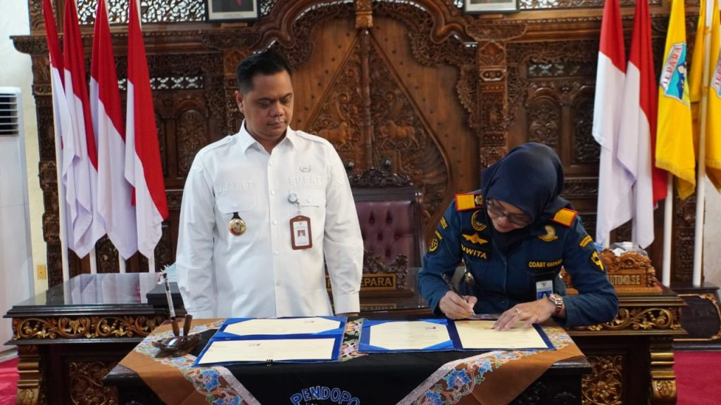 JEPARA – Pemerintah Kabupaten (Pemkab) Jepara bersama Unit Penyelenggara Pelabuhan (UPP) Kelas II Jepara sepakat menjalin kerja sama pengelolaan gedung di kawasan Pelabuhan Penyeberangan Jepara. Penandatanganan Nota Kesepakatan tersebut dilaksanakan di Ruang Kerja Bupati, Rabu (5/11/2025).