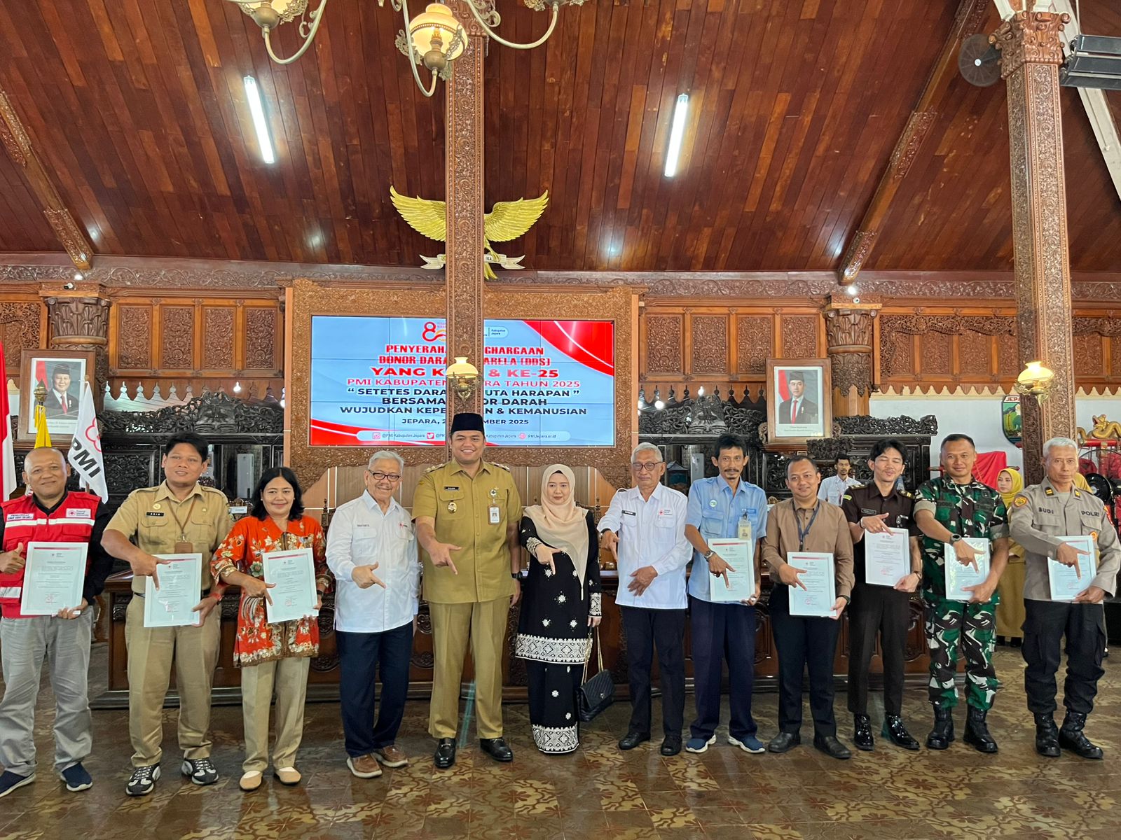 JEPARA – Palang Merah Indonesia (PMI) Kabupaten Jepara menggelar acara Penyerahan Penghargaan Donor Darah Sukarela (DDS) dan Peringatan Hari Ulang Tahun PMI ke-80 Tahun 2025, bertempat di Pendopo R.A Kartini Kabupaten Jepara, Senin (22/9/2025).