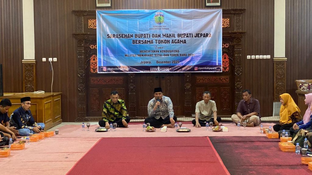 JEPARA – Pemerintah Kabupaten Jepara menggelar sarasehan bersama tokoh agama pada Rabu malam (17/12/2025), di Pendapa Alit. Kegiatan ini dilaksanakan dalam rangka memperkuat kerukunan umat beragama serta menjaga kondusivitas wilayah menjelang perayaan Natal dan Tahun Baru (Nataru) 2026.