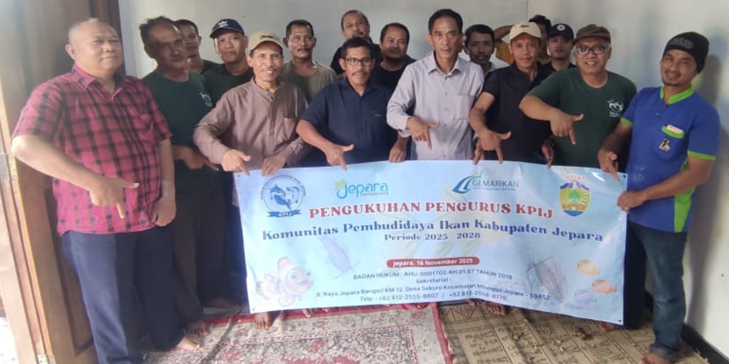 JEPARA – Pemerintah Kabupaten Jepara secara resmi mengukuhkan Pengurus Komunitas Pembudidaya Ikan Kabupaten Jepara (KPIJ) periode 2025–2028. Pengukuhan berlangsung pada Minggu (16/11/2025) di salah satu kedai di Desa Sekuro, Kecamatan Mlonggo.
