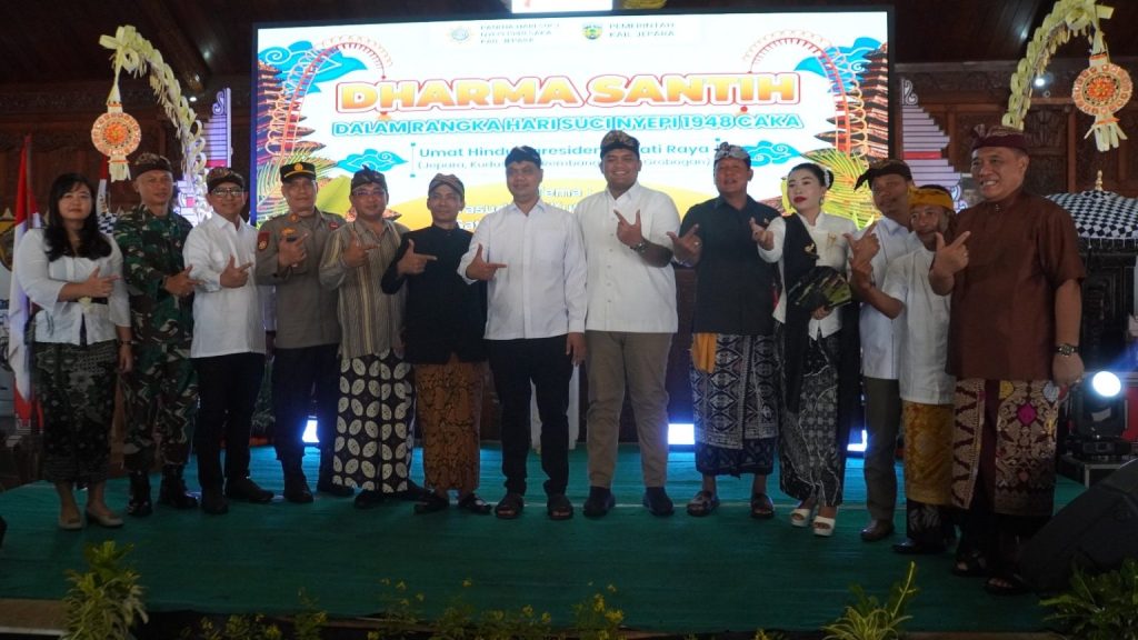 JEPARA – Umat Hindu di Kabupaten Jepara memperingati Dharma Santih Nyepi 1948 Saka di Pendopo Kartini, Minggu (12/4/2026). Acara itu juga dihadiri Umat Hindu Se-Pati Raya yang meliputi Pati, Kudus, Jepara, Rembang, Blora dan Grobogan.