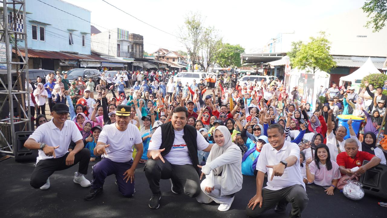 JEPARA – Ratusan masyarakat tumpah ruah memadati area Pasar Jepara 2 untuk mengikuti senam massal yang digelar dalam rangka program Jelajah Pasar ANTV, Jumat (24/10/2025). Kegiatan ini menjadi bagian dari rangkaian Festival ANTV Rame yang berlangsung selama dua hari, 24–25 Oktober 2025, dengan puncak acara di Alun-Alun I Jepara.