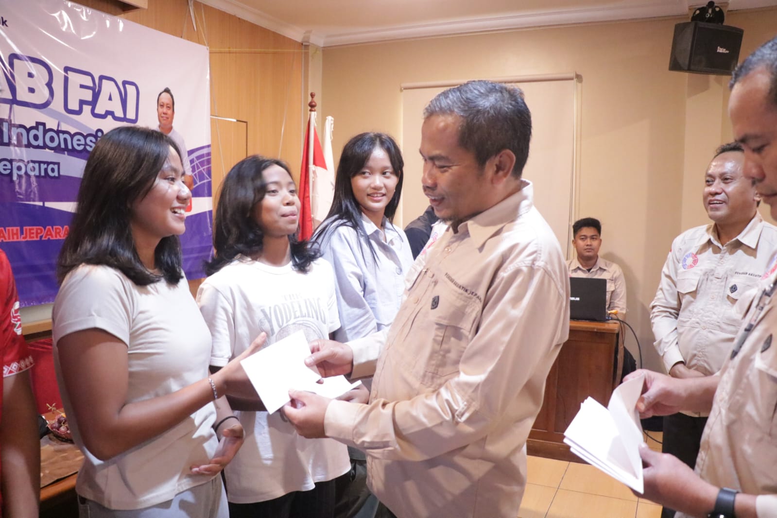 Penyerahan tali asih dilakukan dalam Rapat Kerja Kabupaten (Rakerkab) Pengkab FAI Jepara, Ahad (25/1/2026), di aula Hotel Syailendra Jepara. Kegiatan tersebut dihadiri Sekretaris Daerah Jepara Ary Bachtiar, Sekretaris Umum KONI Jepara Nur Kholis, Ketua Umum FAI Jepara Ajar Tri Raharjo, serta Ketua Harian FAI Jepara Arif Darmawan.