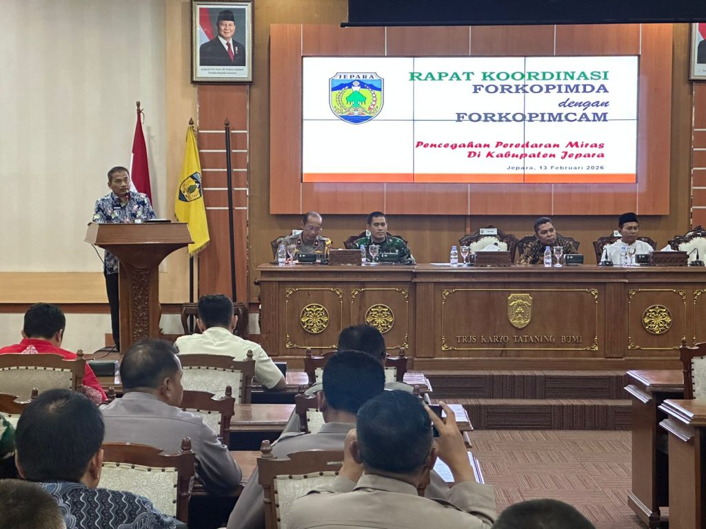 JEPARA – Pemerintah Kabupaten Jepara menggelar rapat koordinasi (rakor) antara Forum Koordinasi Pimpinan Daerah (Forkopimda) dan Forum Koordinasi Pimpinan Kecamatan (Forkopimcam) guna mempersiapkan situasi kondusif menjelang Ramadan sekaligus mengantisipasi peredaran minuman keras (miras). Kegiatan berlangsung di Gedung Shima Setda Jepara, Jumat (13/2/2026).