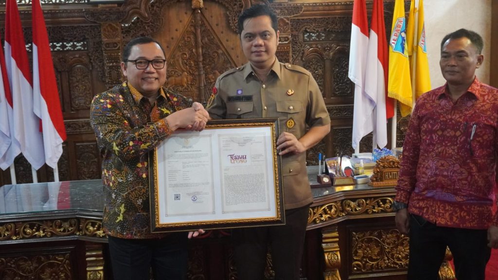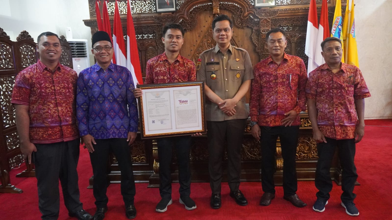 Penyerahan Sertifikat diserahkan langsung oleh Kepala Kantor Wilayah Kementerian Hukum Jawa Tengah Heni Susila Wardoyo, S.H.,M.H. kepada Bupati Jepara H. Witiarso Utomo di Ruang Kerja Bupati Jepara, Kamis (5/2/2026).
