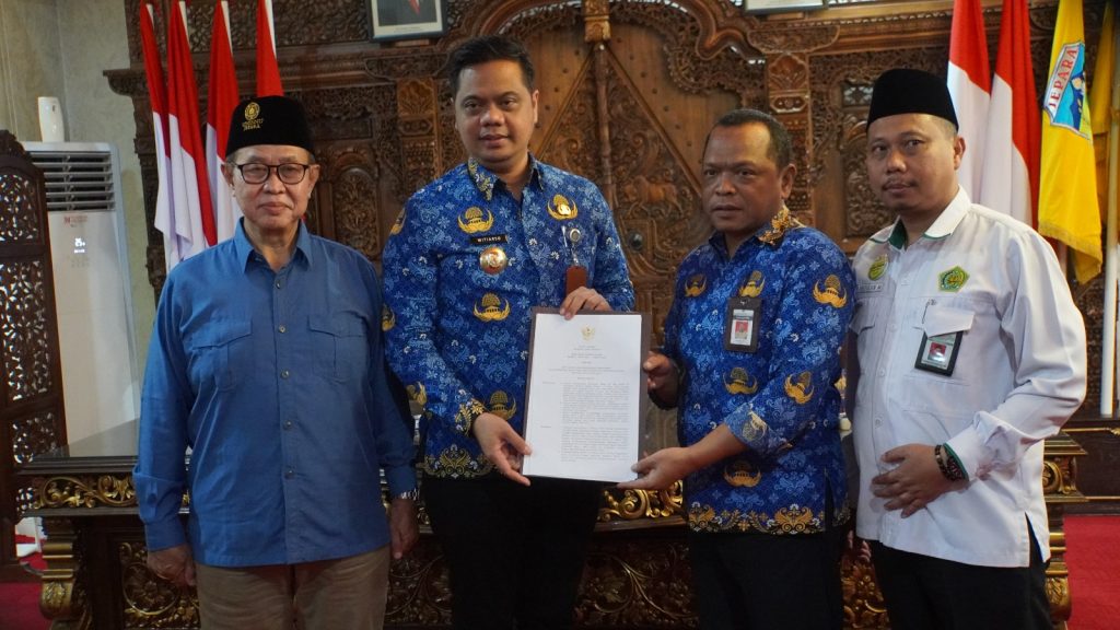JEPARA – Bupati Jepara H. Witiarso (Mas Wiwit) menyerahkan SK kepada tiga nama Tim Panitia Seleksi (Pansel) Seleksi Calon Pimpinan Badan Amil Zakat Nasional (Baznas) Kabupaten Jepara periode 2026-2031. Mereka adalah Ratib Zaini sebagai Ketua, Akhsan Muhyiddin sebagai anggota, dan Prof. Abdul Djamil, sebagai anggota dari unsur tenaga profesional.