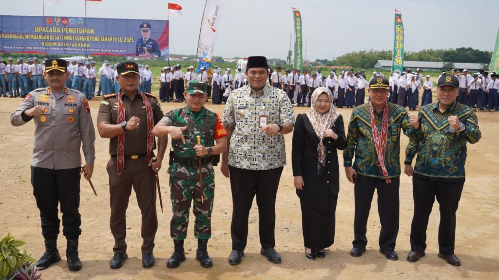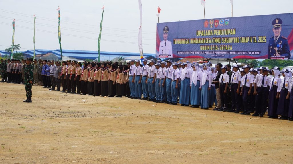 JEPARA – Program Tentara Manunggal Membangun Desa (TMMD) Sengkuyung Tahap IV Tahun 2025 resmi ditutup melalui upacara yang digelar di Lapangan Desa Lebuawu, Kecamatan Pecangaan, Kabupaten Jepara, pada Kamis (6/11/2025). Komandan Kodim 0719/Jepara Letkol Arm Khoirul Cahyadi, S.E. bertindak sebagai Inspektur Upacara (Irup) dalam kegiatan tersebut.