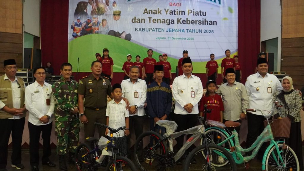 JEPARA — Pemerintah Kabupaten Jepara bersama Badan Amil Zakat Nasional (Baznas) Kabupaten Jepara melaksanakan kegiatan sosial akhir tahun berupa pemberian santunan kepada anak yatim piatu, tenaga kebersihan, dan program beasiswa guru PAUD se-Kabupaten Jepara. Kegiatan tersebut berlangsung di Gedung Wanita Jepara, Rabu (31/12/2025).